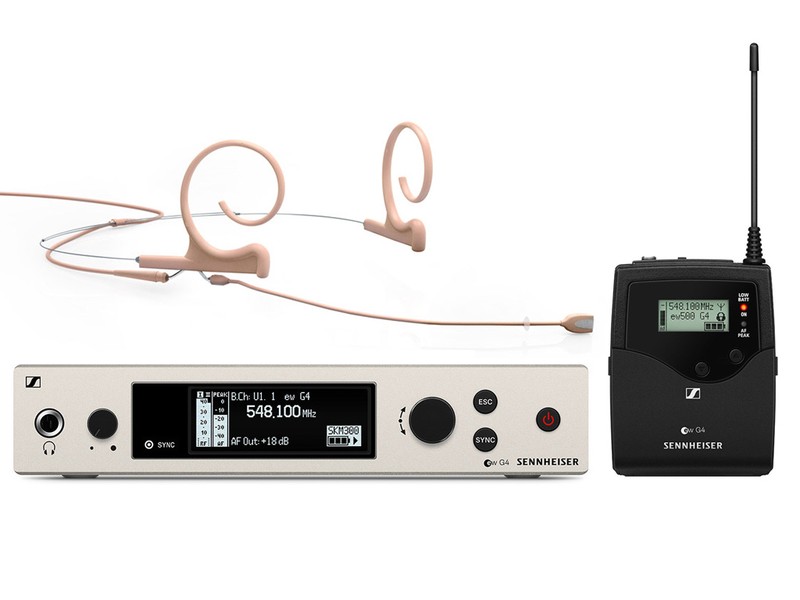 El sistema inalámbrico Sennheiser G4 permite trabajar en entornos complejos gracias a su amplio rango de frecuencias y su fiabilidad en escenarios profesionales. El uso de diadema asegura una captación constante de la voz, ideal para presentadores, actores o ponentes en movimiento.